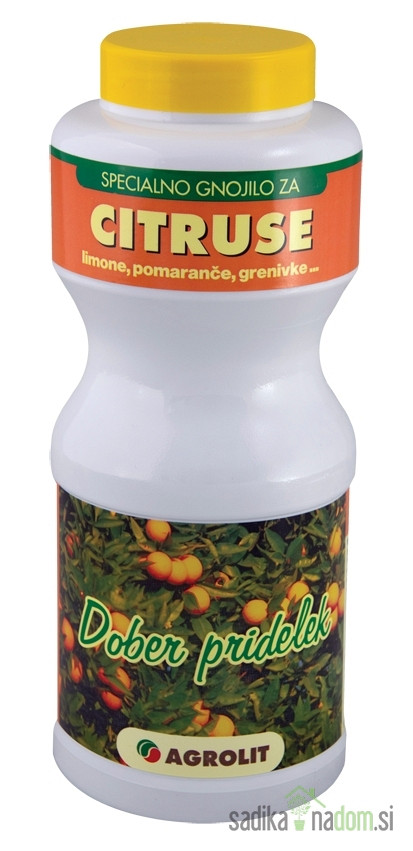 RegistracijaVrtnarček gnojilo za citruse je kakovostno specialno mineralno gnojilo v obliki granulata, namenjeno za gnojenje vseh vrst citrusov oz. agrumov. Optimalna sestava hranil omogoča optimalno rast ter bogat in okusen pridelek. Zaradi posebne sestave preprečuje rumenenje listov.