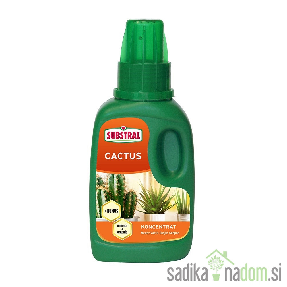 RegistracijaSubstral tekoče gnojilo za kaktuse, sukulente in bonsaje z naravnimi biospodbujevalci rastlinam zagotavlja vsa osnovna hranila in mikrohranila, ki so potrebna za rast in razvoj rastlin ter njihovih korenin. Z redno uporabo se zagotavlja optimalna rast in bujno cvetenje ter dviguje odpornost rastlinam, ki imajo slabše rastne pogoje. Substral gnojilo za kakteje rastlino okrepi in ji zagotavlja trdno oporno tkivo. Primerna je tudi za gnojenje bonsajev.