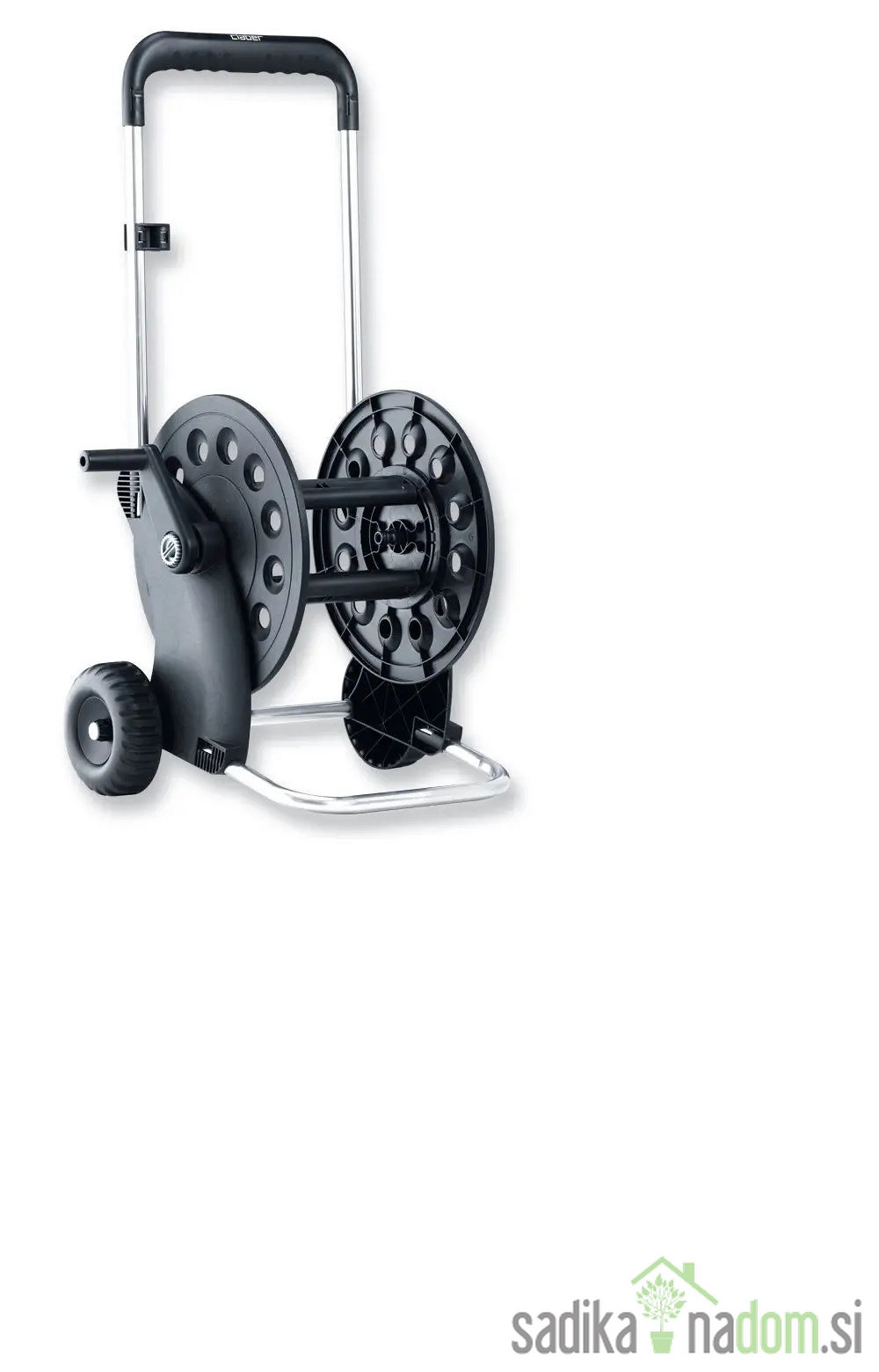 RegistracijaVoziček za cev Claber Ecosei je s svojim aluminijastim ogrodjem zelo okreten in odporen na dež in vlago.