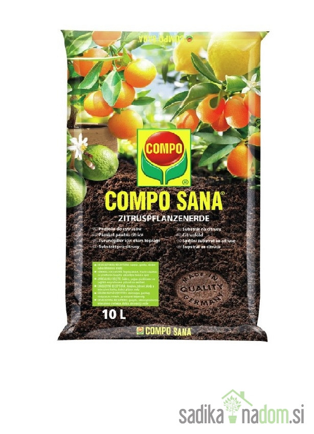 RegistracijaCompo zemlja za citruse vsebuje šoto, kompost, glino, aktivator korenin, kremenčev pesek, hranila, ter vsa ostala potrebna makro in mikrohranila, ki jih rastlina potrebuje za tvorbo cvetov in plodov. Zaradi svoje sestave, rastlinam nudi vse potrebno za zdravo rast in razvoj.