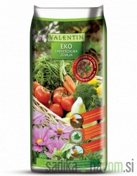 RegistracijaZemlja za lončnice Valentin je specialna sedemkomponentna zemlja, pripravljena za takojšnje sajenje in presajanje vseh vrst lončnic in sobnih rastlin. Vsebuje: - belo in črno šoto, ki omogočata rahel substrat, v katerem se korenine dobro razvijejo ali hitro obnovijo. Rastline so zdrave, močne in bogato cvetoče, - naravni kompost, ki ohranja pravo razmerje organske mase, - lesna vlakna, ki z optimalnim prehajanjem vode in zraka omogočajo zelo zračno strukturo ter izboljšujejo strukturo že obstoječih substratov, - visokokakovostni dodatek iz čiste vulkanske kamenine (perlit), ki deluje kot zadrževalec vlage, zato zalivamo manj kot običajno, - kalcijevo gnojilo (apno), ki ohranja ustrezen pH in preprečuje zakisanost substrata. Hkrati je Ca tudi pomembno rastlinsko hranilo, ki omogoča rastlinam dostopnost drugih hranil, - bolj topna dolgodelujoča hranila, ki so nujno potrebna za normalno rast rastlin. Njihova vsebnost je prilagojena potrebam rastlin. - aktivatorje rasti in cvetenja, ki spodbujajo rast, razvoj in bogato cvetenje rastlin.
